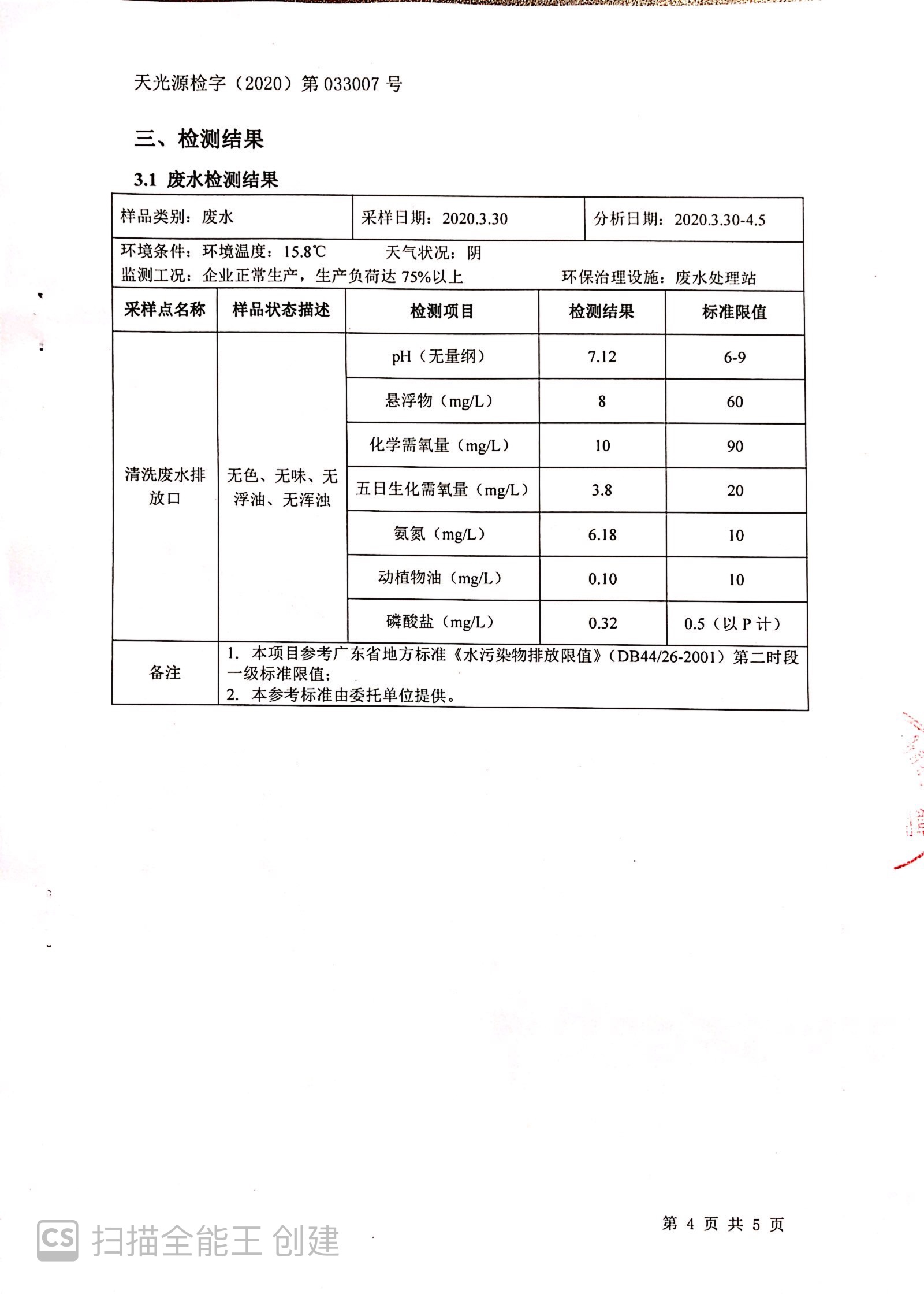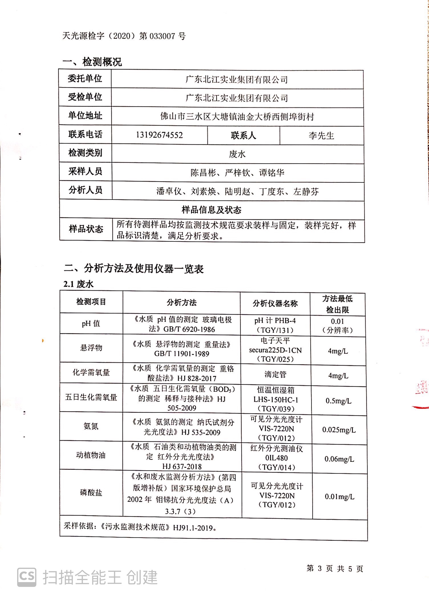 廣東北江實業(yè)集團有限公司廢水檢測報告