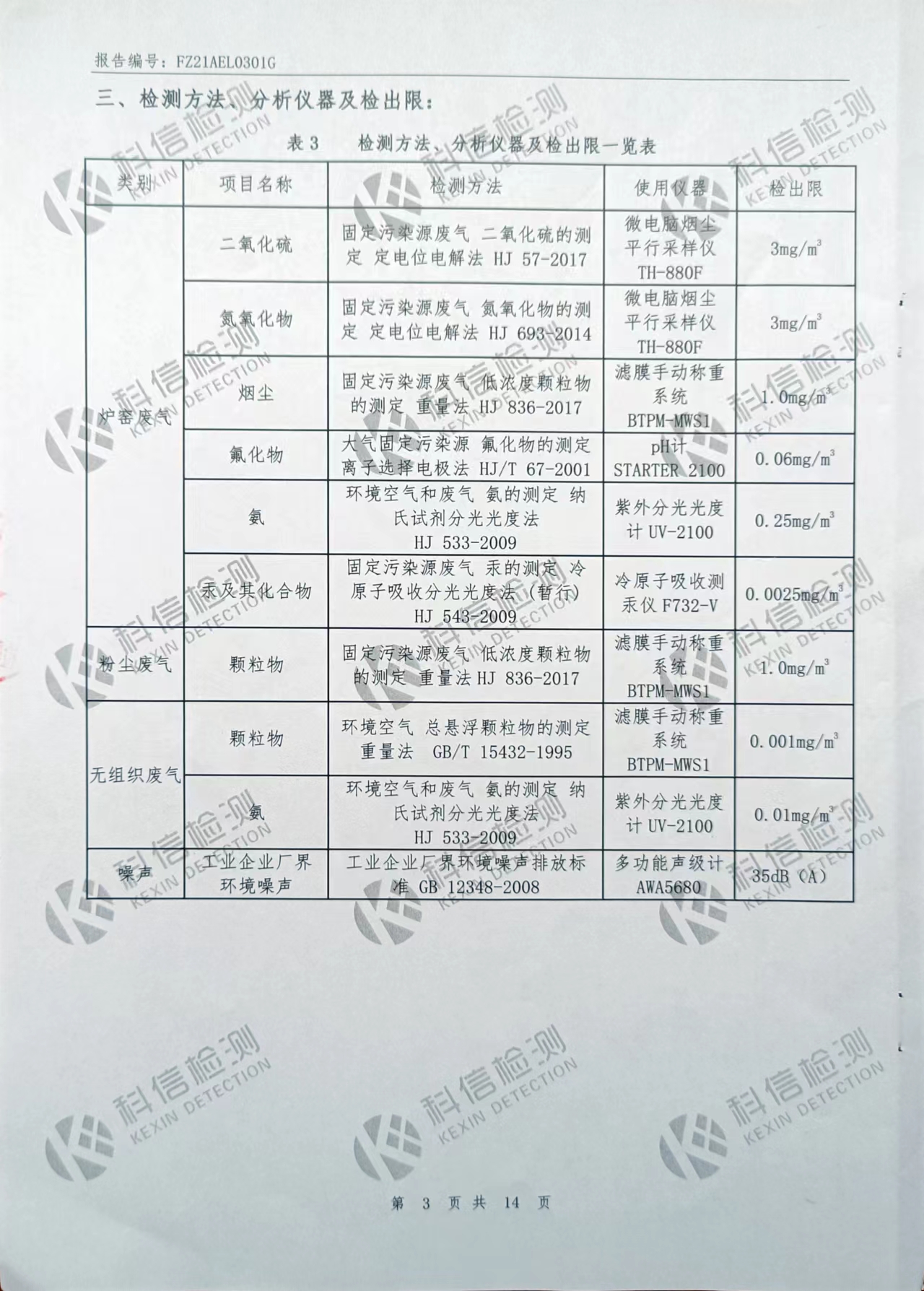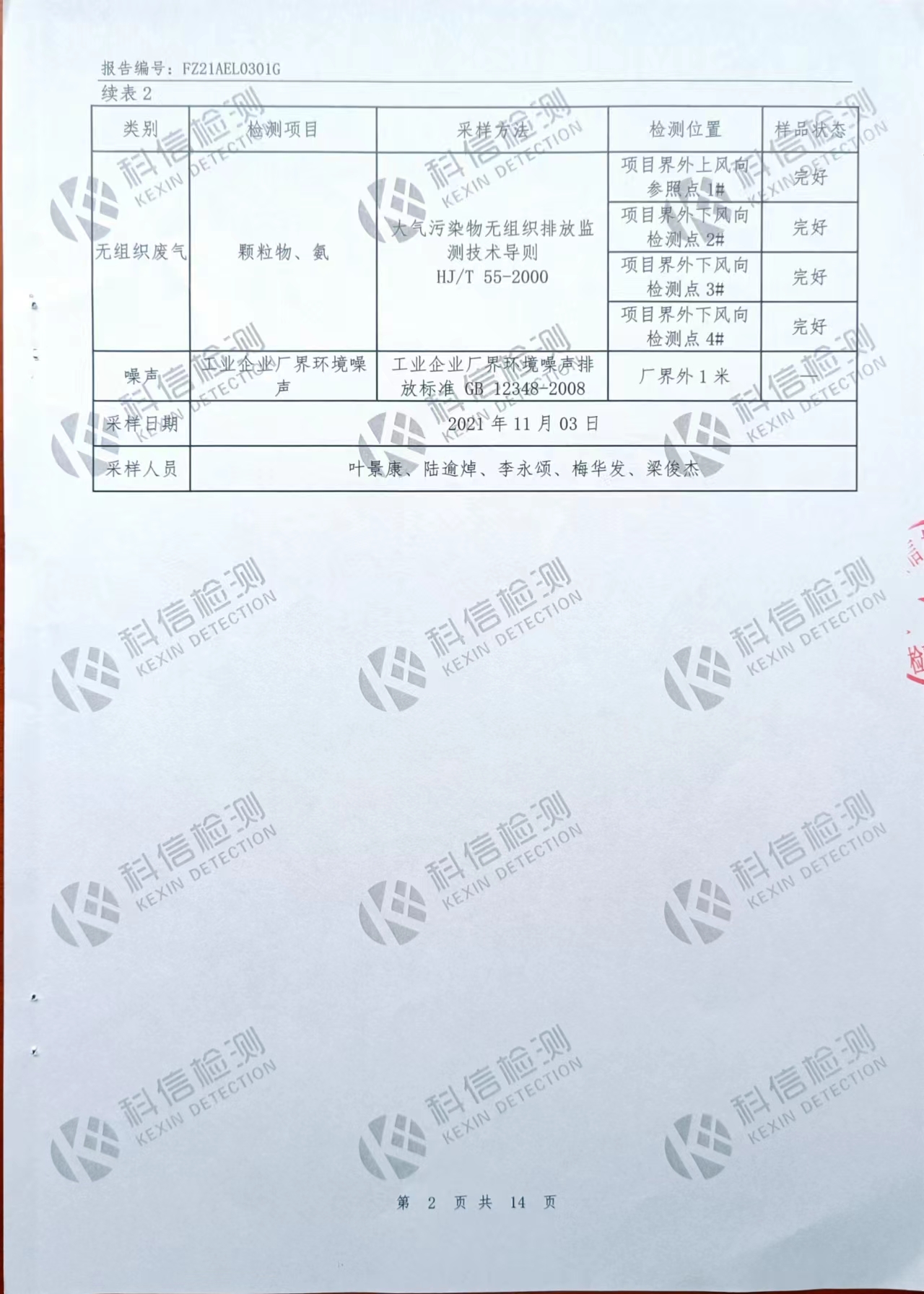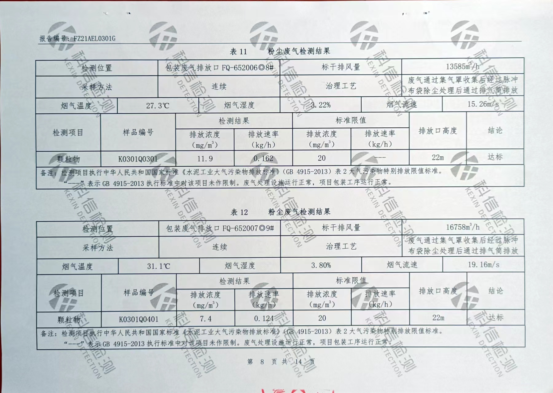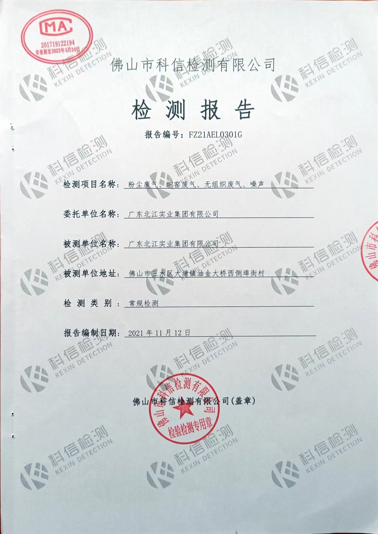 2021年第四季度粉塵廢氣、爐窯廢氣、無組織廢氣、噪聲檢測報告