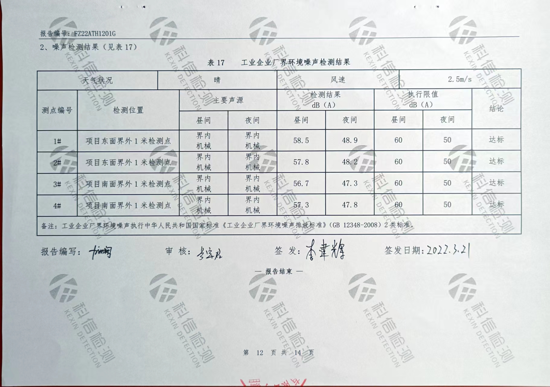 2022年第一度粉塵廢氣、爐窯廢氣、無組織廢氣、噪聲檢測報告