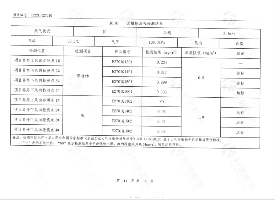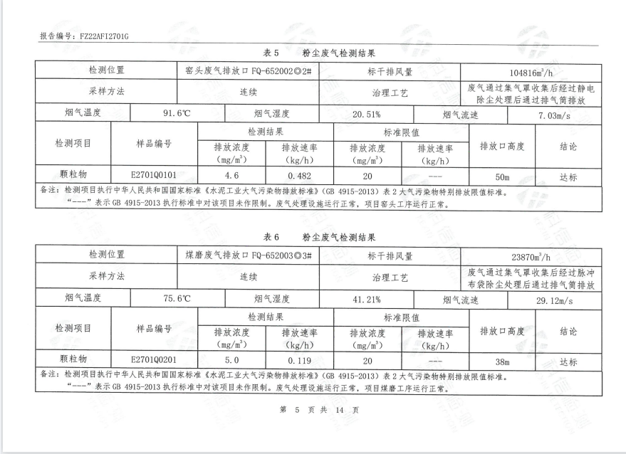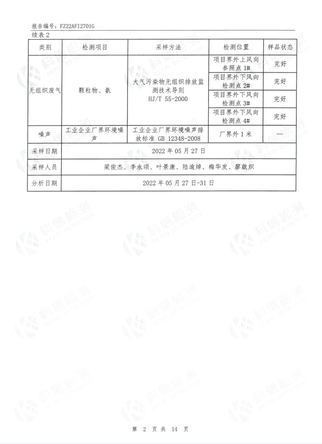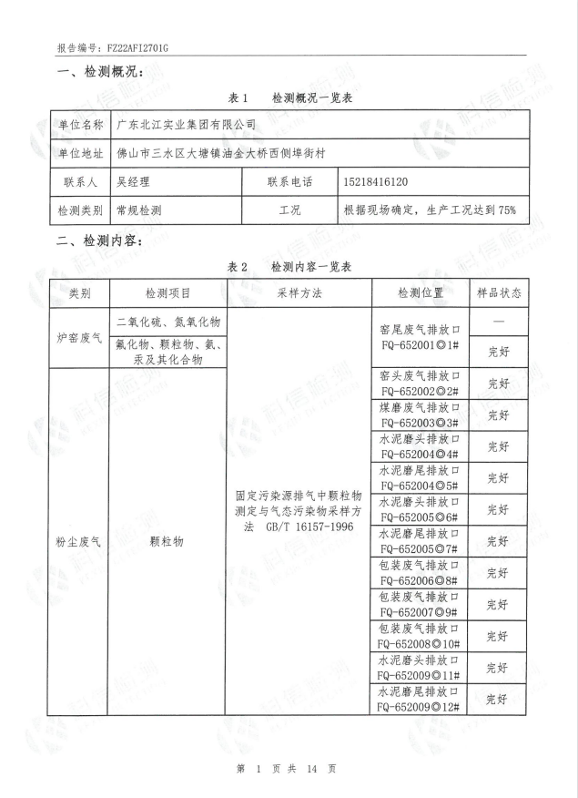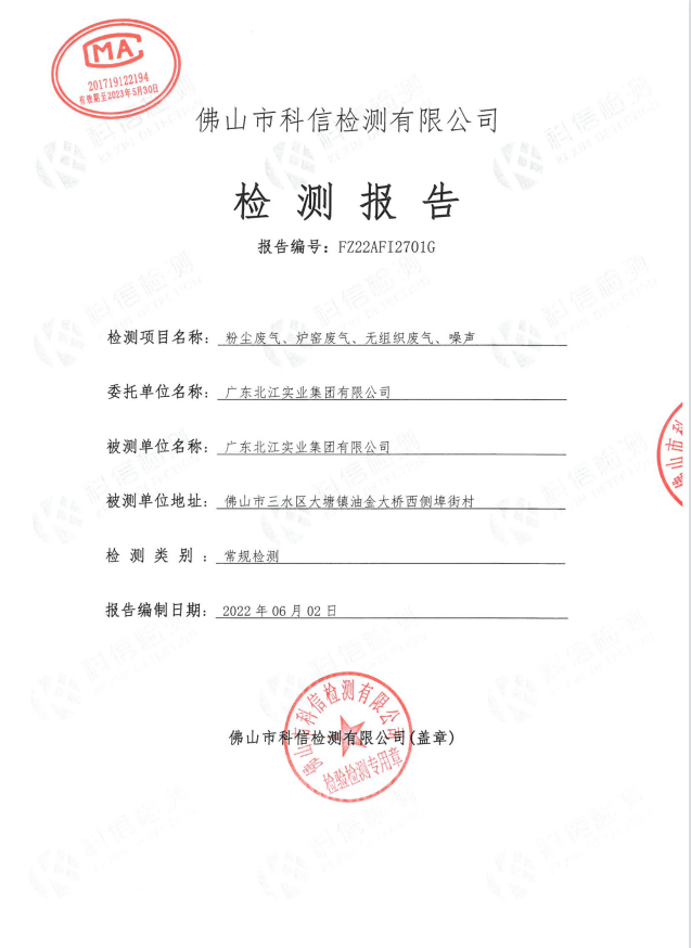 2022年第一季度粉塵廢氣、窯爐廢氣、無(wú)組織廢氣、噪聲檢測(cè)報(bào)告